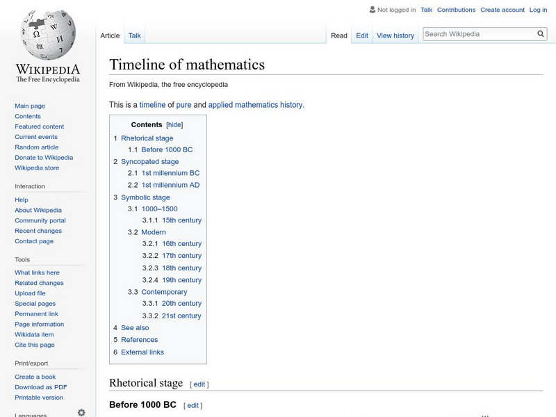 Wikipedia: Timeline of Mathematics