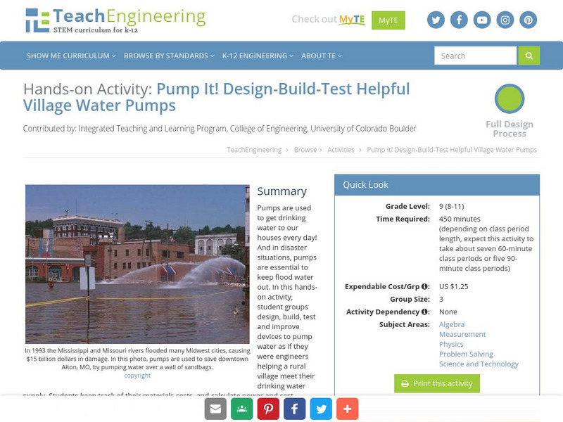 Pumps are used to get drinking water to our houses every day! And in disaster situations, pumps are essential to keep flood water out. In this hands-on activity, student groups design, build, test and improve devices to pump water as if...