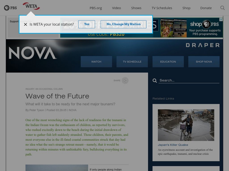 This media-rich essay from NOVA Online describes the challenges involved in installing a warning system for tsunamis in the Indian Ocean.