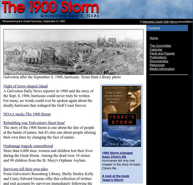 The City of Galveston doesn't want the horrendous hurricane of 1900 to be forgotten. Read through the personal memoirs of those affected, see pictures of the devastation, and watch film clips that show the aftermath of the storm.