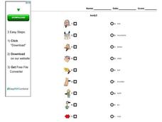 For this parts of the body picture and word match worksheet, students examine 5 pictures that depict parts of the body. Students match these with the words that describe them.