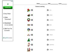 In this ESL Christmas vocabulary worksheet, students examine 7 pictures that depict Christmas symbols. Students match the pictures with the nouns that describe them