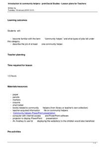 Learners examine different types of community helpers. For this introduction to community helpers lesson, students discuss stories and view a PowerPoint presentation of learners working as community helpers and defining the jobs.