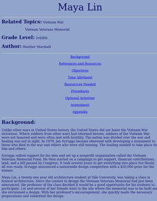 Students are able to explain the important contribution Maya Lin made to society, write about their definition of a hero, and recognize, appreciate and describe the significance of memorials.