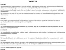 Seventh graders select, collect, and classify various insects by constructing an apparatus from materials that aid in the capture and containment of the insect.