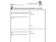 Halloween Themed Math Word Problems--Up to 100