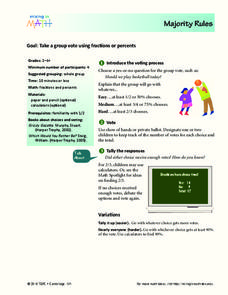 Students practice the voting process by taking a group vote using fractions or percents. In this voting process lesson plan, students review the voting process and vote using hands or a private ballot. Students tally the responses to the...