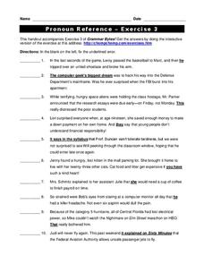 In these pronoun and antecedents worksheets, students read the sentences and correct the underlined errors in pronoun reference.