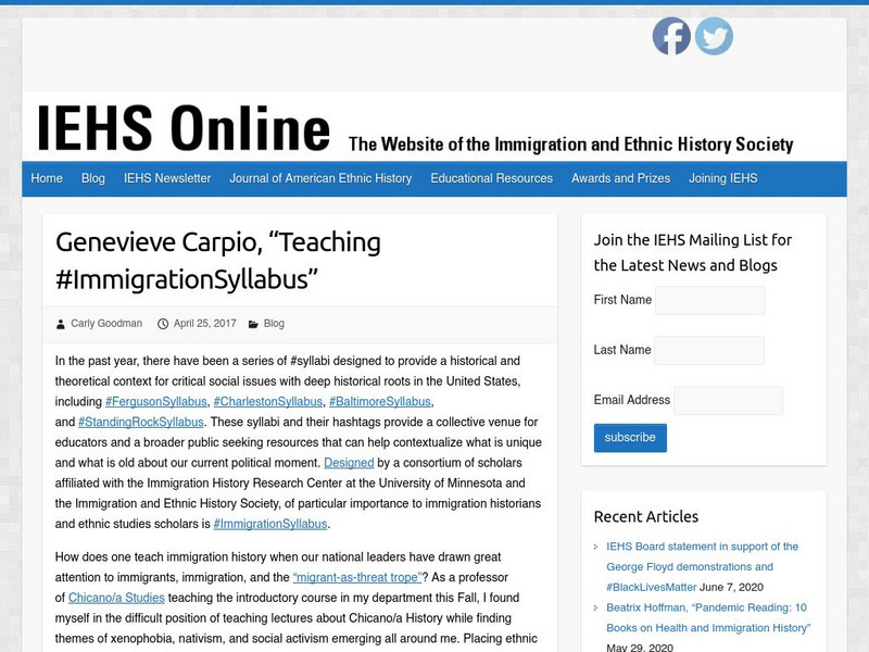Iehs: Genevieve Carpio, "Teaching #Immigration Syllabus"