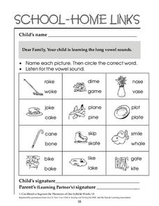 Tree, bee, knee, three... what do these have in common? Focus on vowel sounds in this matching worksheet for beginning readers. Learners connect a picture of a tree to pictures that rhyme with it and then get some printing practice. All...