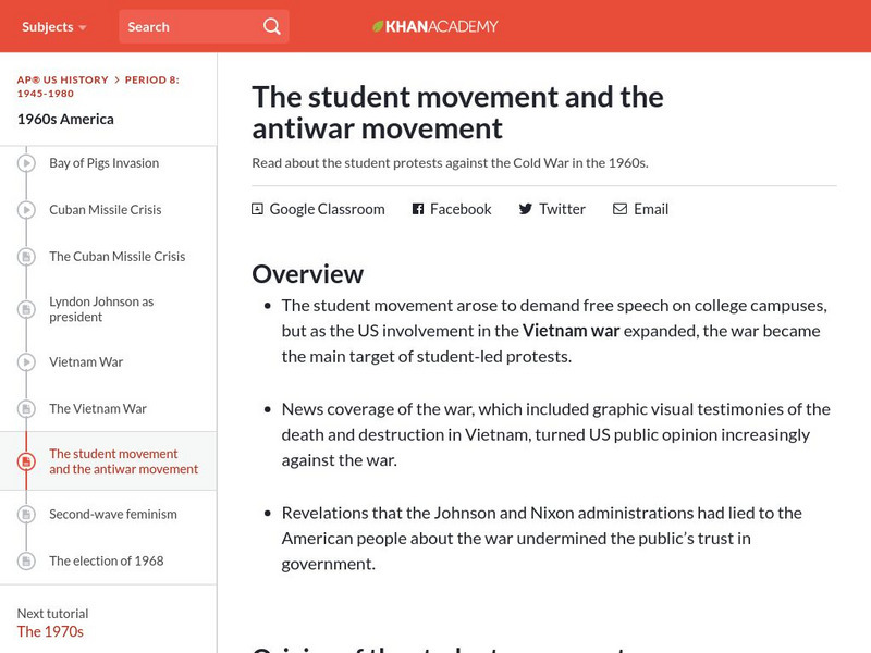 This Khan Academy resource provides a table of contents with notes for several sections of AP US History: Period 8: 1945-1980.