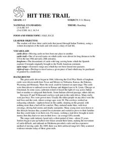 Students draw three cattle trails that passed through Indian Territory, using a written description of the trails and will create a diary of trail life. Students research a historical trail as assigned. Students share their information...