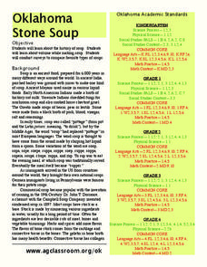 Class members complete activities related to the story "Oklahoma Stone Soup." First, pupils read, discuss, and answer questions about the story. Next, to incorporate math into the lesson plan, learners make stone soup using a variety of...