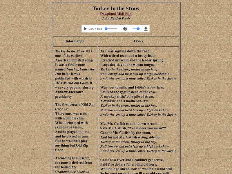 This site provides the lyrics to an early minstrel song that was popular during Andrew Jackson's presidency.
