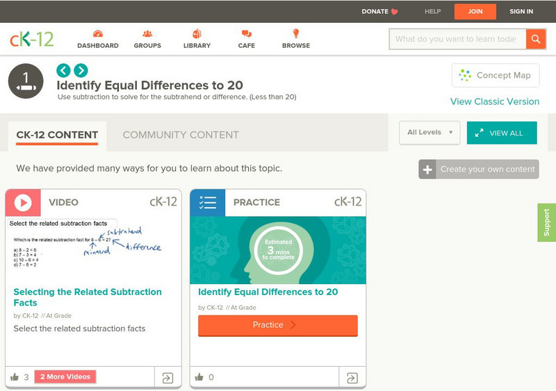 [Free Registration/Login may be required to access all resource tools.] Practice problems where students subtract one-digit numbers in two step word problems. A helpful video pops up if students are solving the problems incorrectly to...