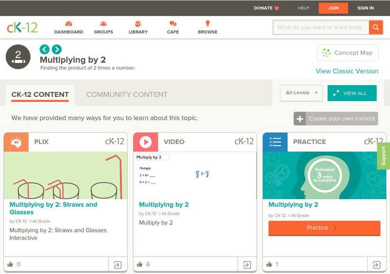 [Free Registration/Login may be required to access all resource tools.] The PLIX interactive media allows students to manipulate straws into glasses to understand the concept of multiplying by twos, followed by a video that connects...