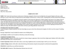 This Visual Arts lesson plan focuses on the process of drawing a perspective from an eye level high above the ground. Students will create a chalk drawing of a scene of their choice by using the process and techniques of horizon line, a...