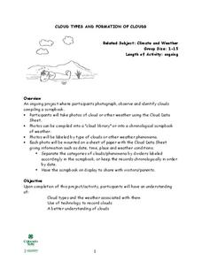 Young scholars analyze how clouds form. In this cloud formation lesson, young scholars brainstorm types of clouds and what they think they're made of. Young scholars conduct an experiment to see how clouds form and discuss their...