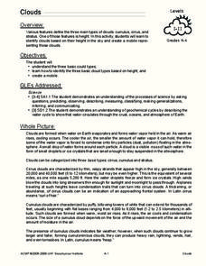 Fourth graders examine different types of clouds. In this cloud lesson, 4th graders examine pictures of different types of clouds and read details about them in the captions under the images. They make a cloud viewer by cutting out the...