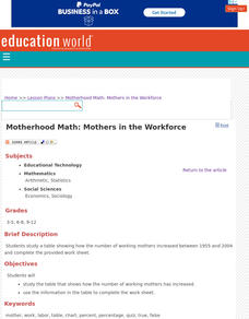 Students evaluate a table showing how the number of working mothers increased between 1955 and 2000. They use the information from the table to complete a worksheet imbedded in this lesson.