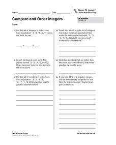 In this comparing and ordering integers practice worksheet, students sharpen their problem solving skills as they solve 6 story problems.