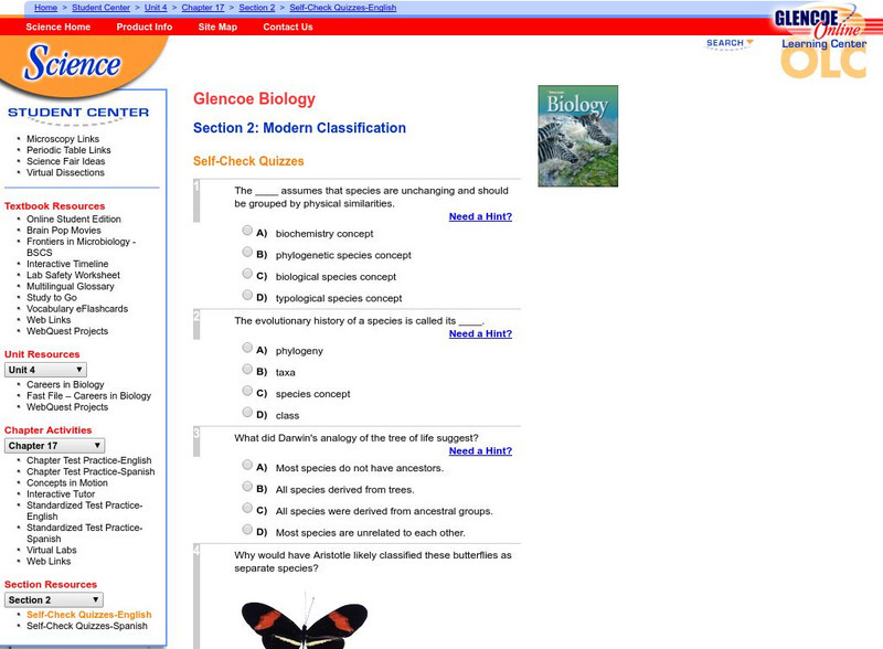 Glencoe Biology: Modern Classification: Self Check Quiz