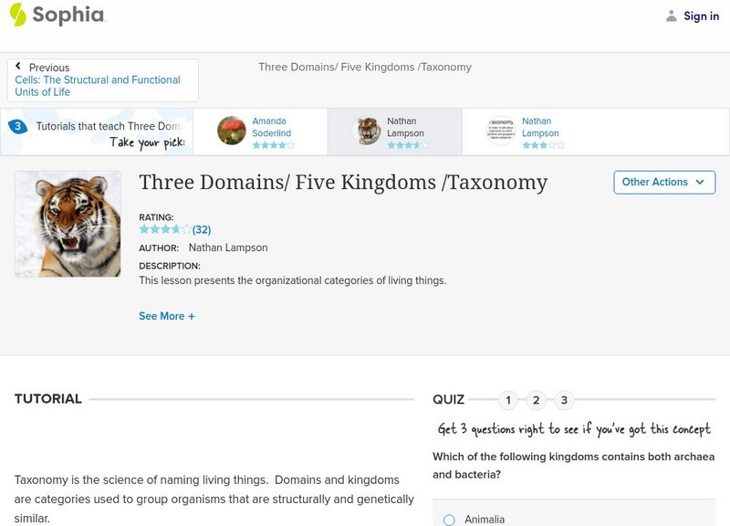Sophia: Three Domains/ Five Kingdoms /Taxonomy: Lesson 3