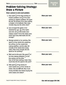 In this fraction drawing activity, learners read the fraction word problems. Students then draw a picture to help them solve the word problem.