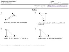 In this tangent lines instructional activity, 10th graders solve and complete 13 various types of problems. First, they solve the right triangles for the variables shown. Then, students name a radius, a diameter, a tangent, a secant, a...