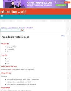 Students create a picture book of the U.S. presidents. They study general information about the U.S. presidents, write a sentence about each president, and create a picture book about the U.S. presidents.