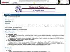 Here is a beautiful lesson on clouds designed for your 1st graders. Learners study three different types of clouds. They construct drawings of cumulus, cirrus, and stratus clouds. The Cloud Book, by Tommie dePaola is used to...