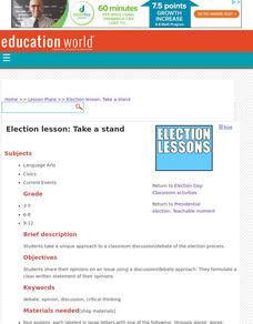 Here is a four-corner debate-style activity specifically geared to election year issues. Learners group themselves according to whether they strongly agree, agree, disagree, or strongly disagree with statements that relate to elections...