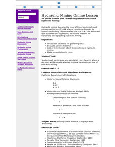 Learners explore reasons for supporting and opposing hydraulic mining. It was the most efficient and used mining method until 1884. A simulated court hearing is held where a decision is made whether to allow the continued use of this...