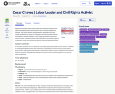 Cesar Chavez believed so much in the cause of farmworkers that he put his money where his mouth was. Chavez quit his well-paying job to organize them into labor unions. Using a speech, photograph, and short biographical video, pupils...