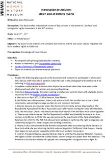 Students examine the life of Dolores Huerta and her contributions to the development of labor unions. They read the book "Cesar Chavez: Triumph of Spirit," and in groups create a quiz, complete a Venn diagram, listen to a guest...