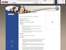 Seventh graders perform research related to the concept of the European Union. By becoming familiar with the Union they comprehend the advantages and disadvantages of the governmental structure.