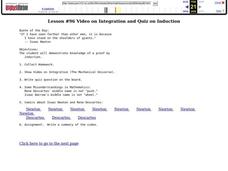 Learners engage in a lesson that is concerned with the concepts of integration and induction. They view a video about integration and take a quiz on induction. Students use the resource links to view information added to the lesson to...