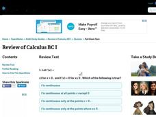 In this review of functions worksheet, students find the derivative of functions, evaluate limits, determine whether functions are invertible, identify critical points and find the equation of the tangent line to a function. This...