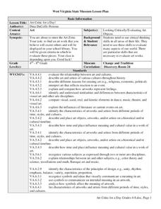 Middle schoolers practice evaluating art by creating a research project and presentation. They use the Internet and library to discover a piece of art or artist whom they feel has an impact on the world of art. Next, they create a...