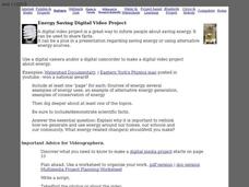 In this energy worksheet, students click on the links to research the internet about energy and follow directions in order to create a digital video project. Students follow 8 sets of directions.