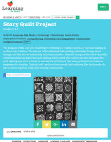Students investigate how quilt making was a family and community activity. They read and discuss books, complete various handouts, and create a paper quilt celebrating philanthropic activities.
