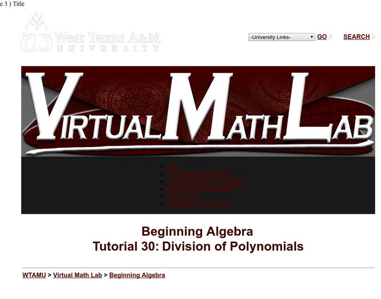 Wtamu Virtual Math Lab: Beginning Algebra: Division of Polynomials