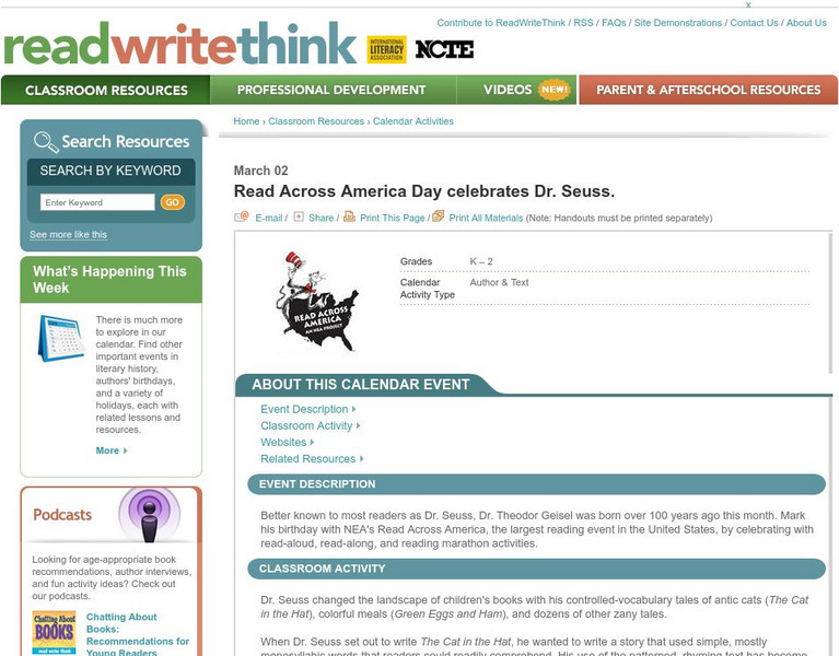 Read Write Think: Dr. Seuss Classroom Activity