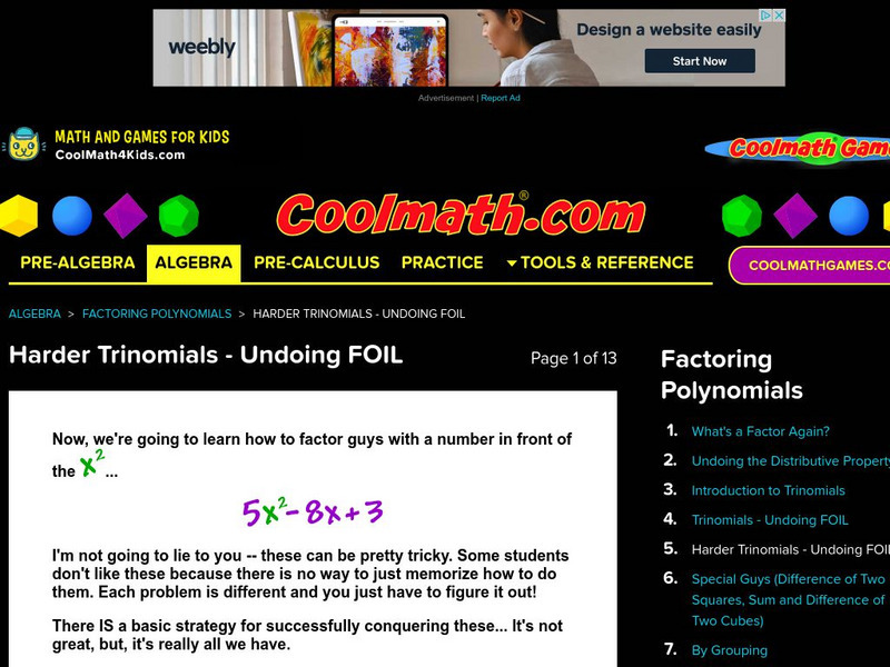 Coolmath: Factoring Polynomials Harder Trinomials Undoing Foil