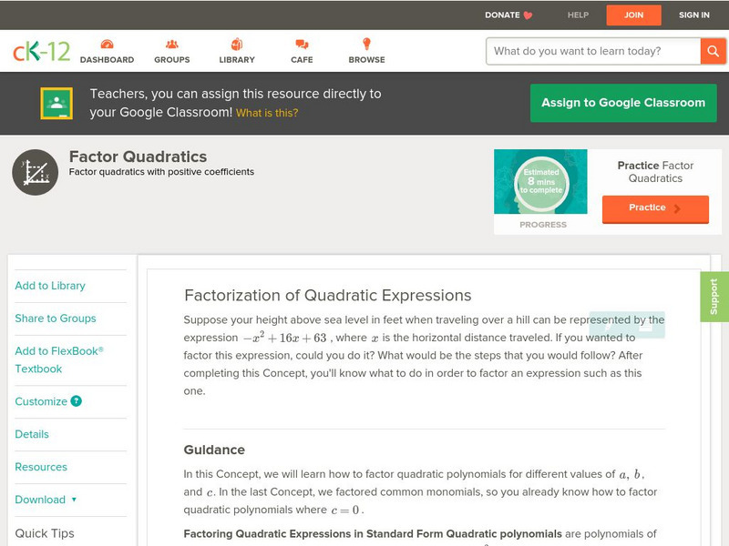 [Free Registration/Login may be required to access all resource tools.] Learn how to factor quadratic expressions.