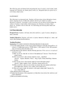 Students create a rainforest poster and move to music learning about the rainforest. In this rainforest lesson plan, students express themselves in a variety of ways using their knowledge of the rainforest. Activities include creating a...