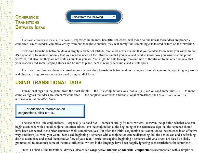 This tutorial teaches writing students how to share convincing in well-written sentences that are connected from one to the other--that is, they exhibit transition. W.9-10.1c cohesion/clarity/reason, W.9-10.2c cohesion/clarity/trans