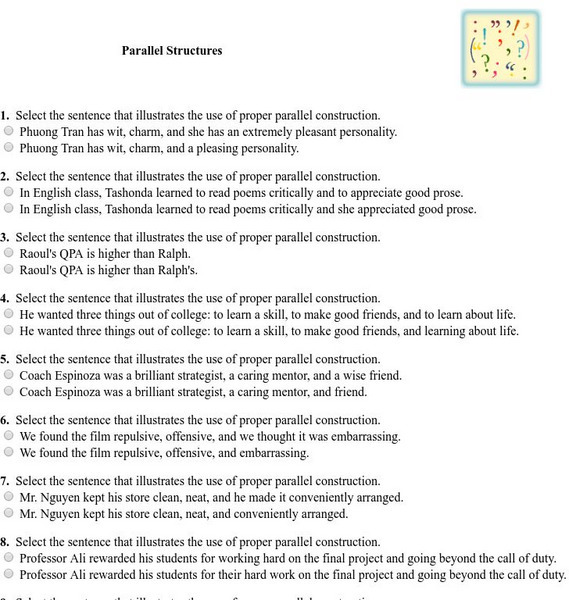 Guide to Grammar and Writing: Parallel Structures Quiz