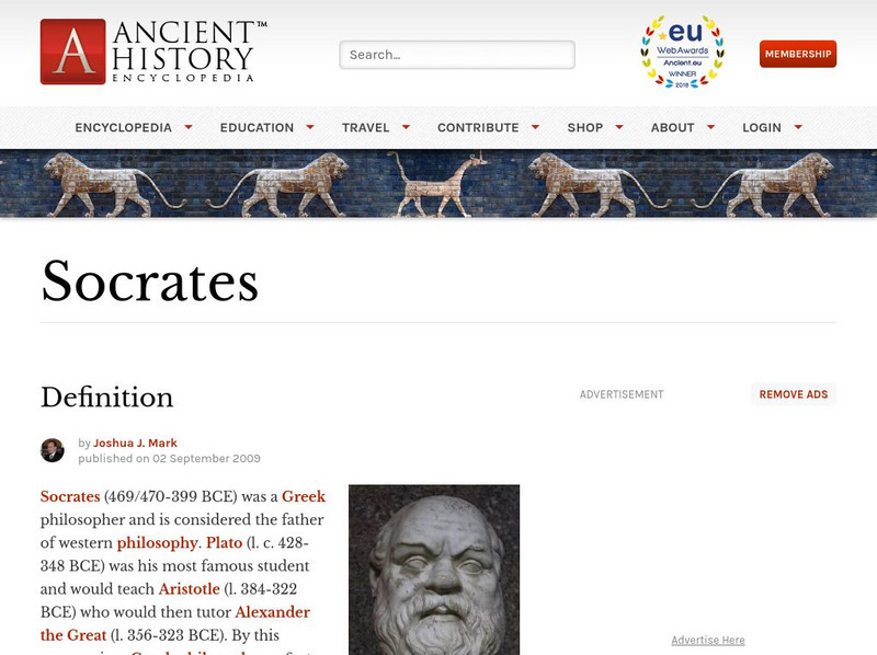 Read about the life of the Greek philosopher Socrates, the philosophy he developed, his influence, and his execution for impiety and for corrupting young people.