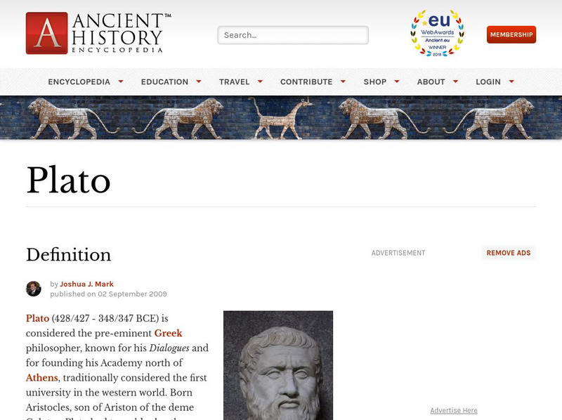 Read about the life of the Greek philosopher Plato, the philosophy he developed, and his legacy.